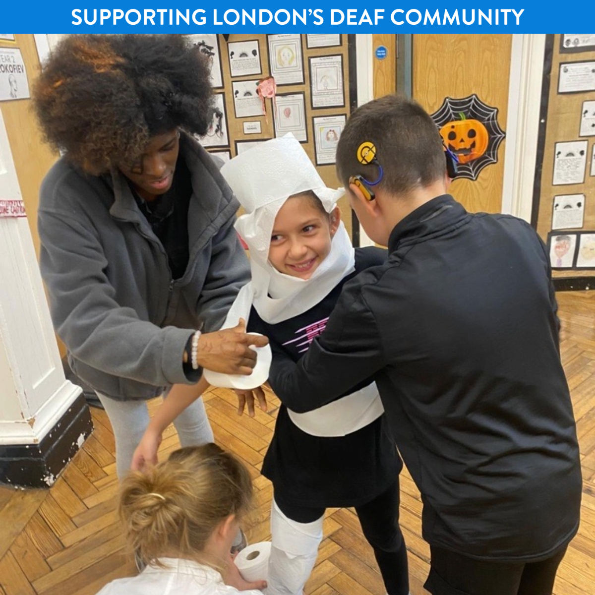 Meanwhile in Catford, Deaf SELF Playscheme had a cosy group of children and youths. Both groups participated in drama workshops, facilitated by West End superstar actor and expert Youth Theatre facilitator, Kitty Devlin. The groups had so much fun making each other laugh and directing one another in super creative scenes.